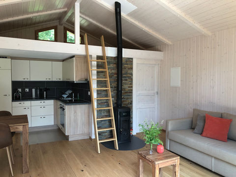 The facilities include a spacious parking lot about 40 meters from the house. A modern kitchen with a dishwasher large refrigerator and freezer, a wood stove an outdoor grill, a modern bathroom with shower and underfloor heating. In the basement, there is a washing machine, with plenty of storage space, as well as a washbasin. WiFi /WLAN and 4G phone reception.